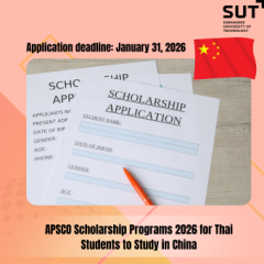Suranaree University of Technology (SUT), through the Center for International Affairs (CIA), would like to announce that the Office of the Civil Service Commission (OCSC) is now accepting applications for Thai Government Scholarships for Doctoral Studies in the People’s Republic of China for the academic year 2026, with a total of 5 Continue Reading