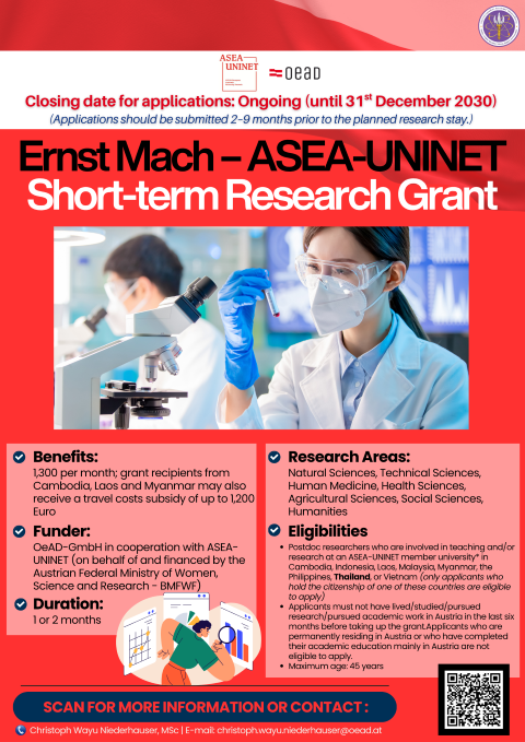 รัฐบาลออสเตรียเปิดรับสมัครทุน Ernst Mach-Grant ASEA-UNINET 2026/27