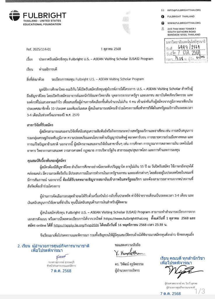🌐 More information: www.fulbrightthai.org or Online Application Website: