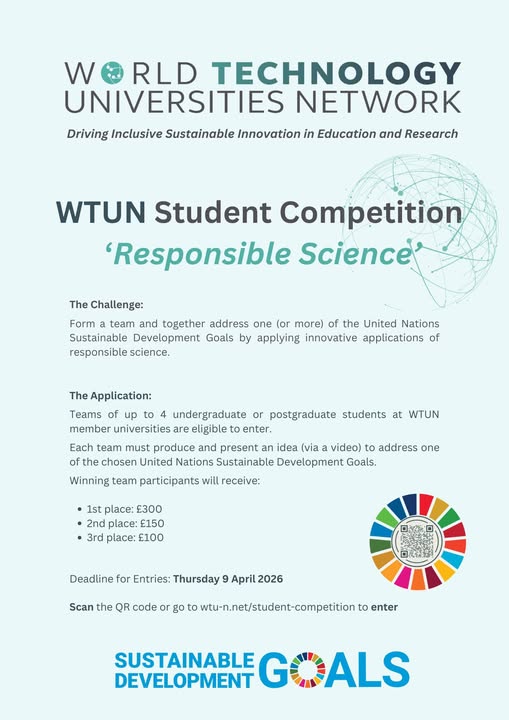 The competition seeks innovative and technological solutions with measurable societal impact and encourages students to consider not only technical feasibility but also social and economic challenges inherent in achieving sustainable outcomes. Winning teams will receive cash prizes for first, second, and third place, and the top team will also be invited to present their project virtually at WTUN Congress 2025, where they will share their work with delegates from international universities.