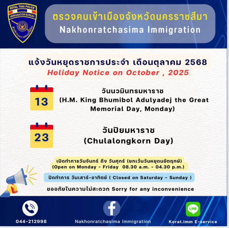 - You must apply for a visa extension BEFORE the date your visa expires. This application must be done in person at the Nakhon Ratchasima Immigration Office.